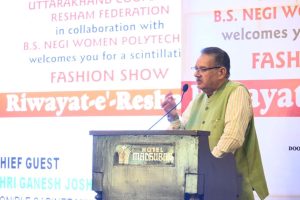 मंत्री जोशी ने कहा कि रेशम फेडरेशन का “दून सिल्क ब्रांड” अब राष्ट्रीय स्तर पर अपनी पहचान बना चुका है। विगत वर्ष लगभग 5 करोड़ मूल्य के रेशमी वस्त्रों का उत्पादन कर फेडरेशन ने 1 करोड़ का लाभ अर्जित किया उन्होंने सिल्क एक्स्पो के दौरान रेशम निदेशालय और बी.एस. नेगी महिला प्राविधिक प्रशिक्षण संस्थान, ओएनजीसी की बालिकाओं द्वारा प्रस्तुत भव्य फैशन शो “रिवायत-ए-रेशम-2” को भी मंत्री ने सराहा। उन्होंने कहा कि यह कार्यक्रम संस्थानों की आपसी सहभागिता का उदाहरण है, जिससे एक ओर छात्राओं को अपनी प्रतिभा दिखाने का अवसर मिल रहा है, वहीं दूसरी ओर दून सिल्क ब्रांड का भी प्रभावी प्रमोशन संभव हो पा रहा है। इस दौरान मंत्री गणेश जोशी ने रेशम कीट पालन में उत्कृष्ट कार्य करने वाले कर्मचारियों को भी सम्मानित किया।