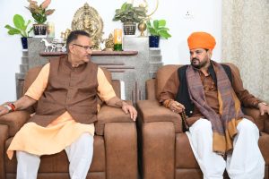 उत्तराखण्ड के कैबिनेट मंत्री गणेश जोशी ने आज देहरादून स्थित अपने आवास पर पूर्व सांसद एवं भारतीय कुश्ती संघ के अध्यक्ष बृजभूषण शरण सिंह का हार्दिक स्वागत किया। इस अवसर पर मंत्री जोशी ने पुष्पगुच्छ भेंट कर उनका अभिनंदन किया और उनके साथ विभिन्न सामाजिक एवं राजनीतिक विषयों पर विचार-विमर्श किया। उन्होंने सम्मान स्वरूप श्रीगणेश जी की मूर्ति भेंट की।