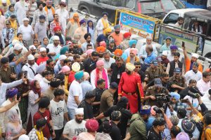 फूल बरसांदी जांवा राह तेरे फुल बरसांदी जांवा……., किवंे करां, किवें करा तेरी सेवा मालका किवें करां…..जे बाबा मैं खुद ही आंवा, जे बाबा मैं खुद ही आंवा मैं किस्मद दा माडा मालका किवंे करां… जैसे गुरु भक्ति के भजनों से नगर परिक्रमां मंे संगत रमी रही।